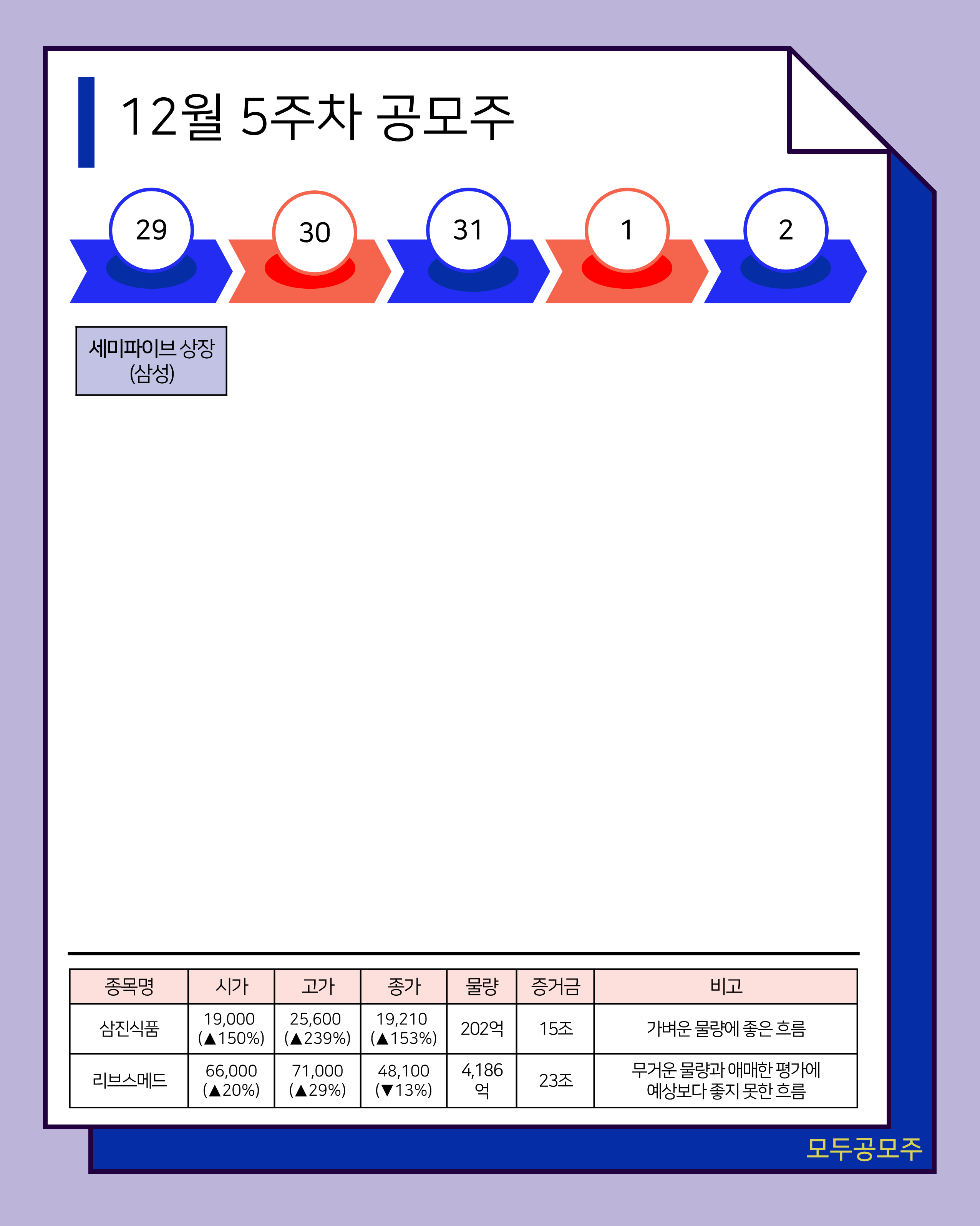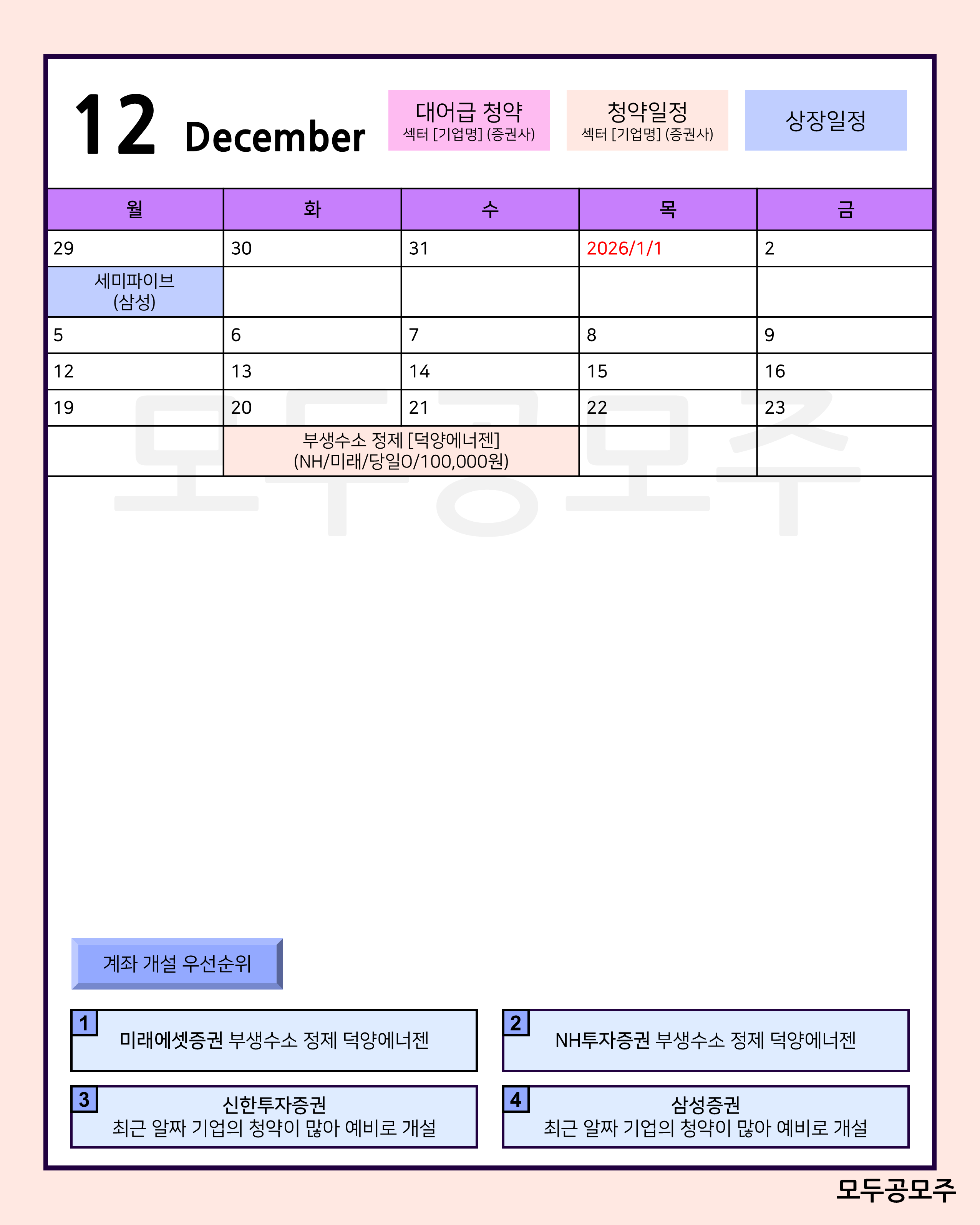 안녕하세요? 모두공모주입니다. 12/27 기준 12월 공모주 달력 및 5주차 세부일정 공유드립니다.