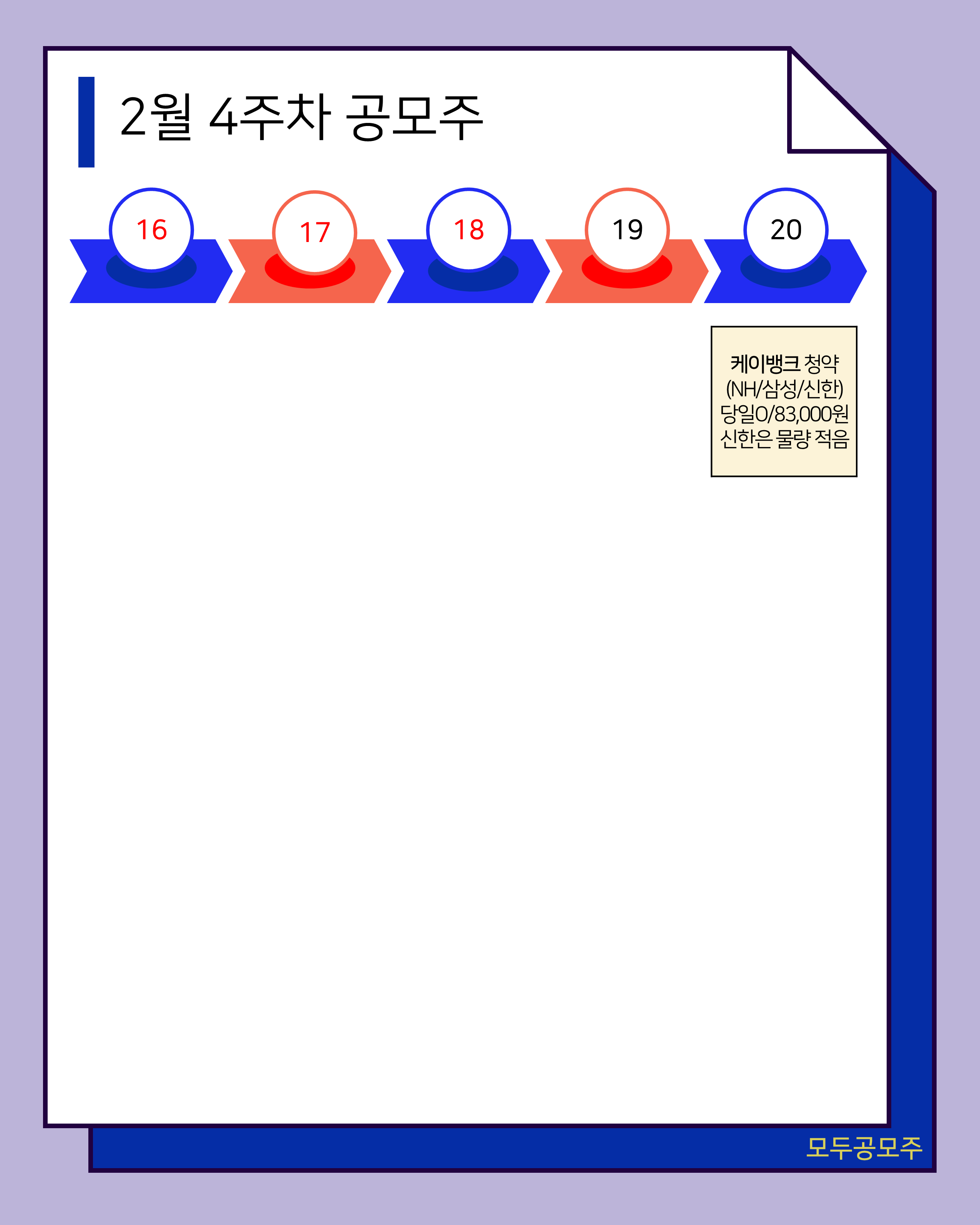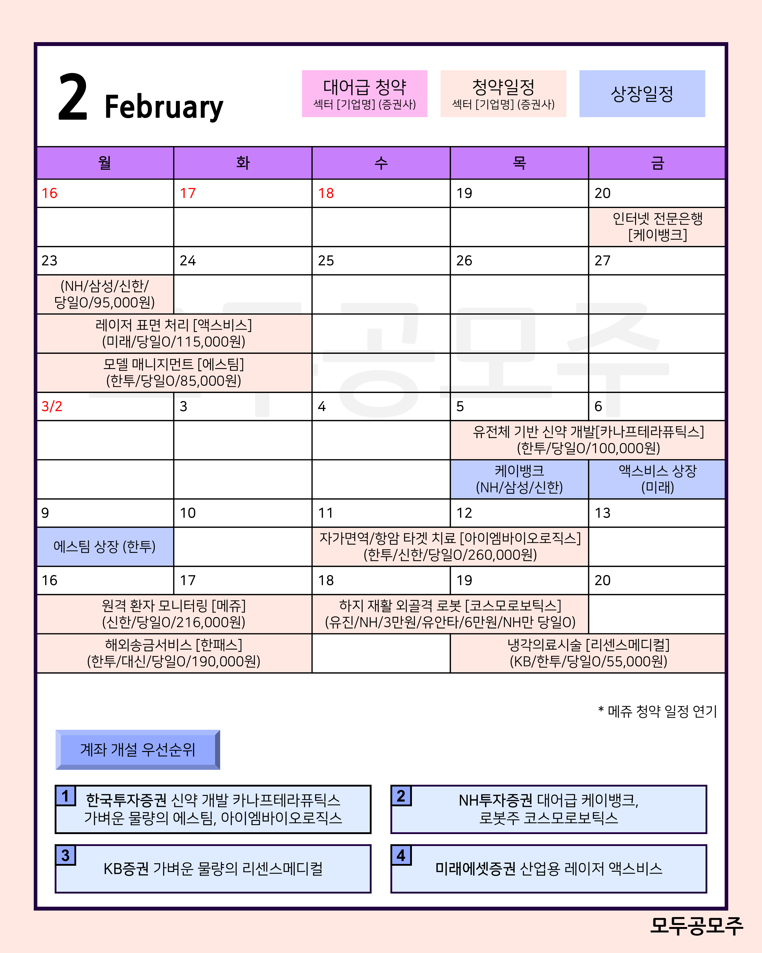 안녕하세요? 모두공모주입니다. 2/15 기준 2월 공모주 달력 및 4주차 세부일정 공유드립니다.